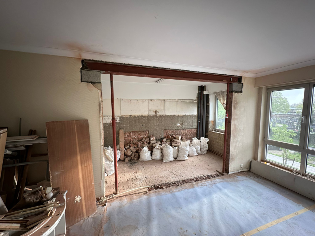 Extra isolatie rondom de raampartijen verhoogt de energie-efficiëntie en comfort. De keuken is vergroot door het plaatsen van een steunbalk, wat een open en luchtige ruimte creëert.